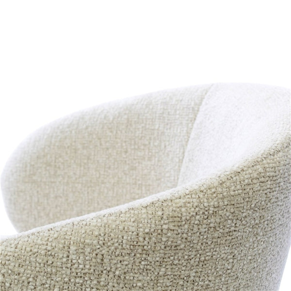 De kuip is bekleed in een warme beige stof die uitnodigt om heerlijk lang te tafelen of te werken. Dankzij het elegante design en de fijne armleuningen combineert de Bolly moeiteloos stijl met zitcomfort.
